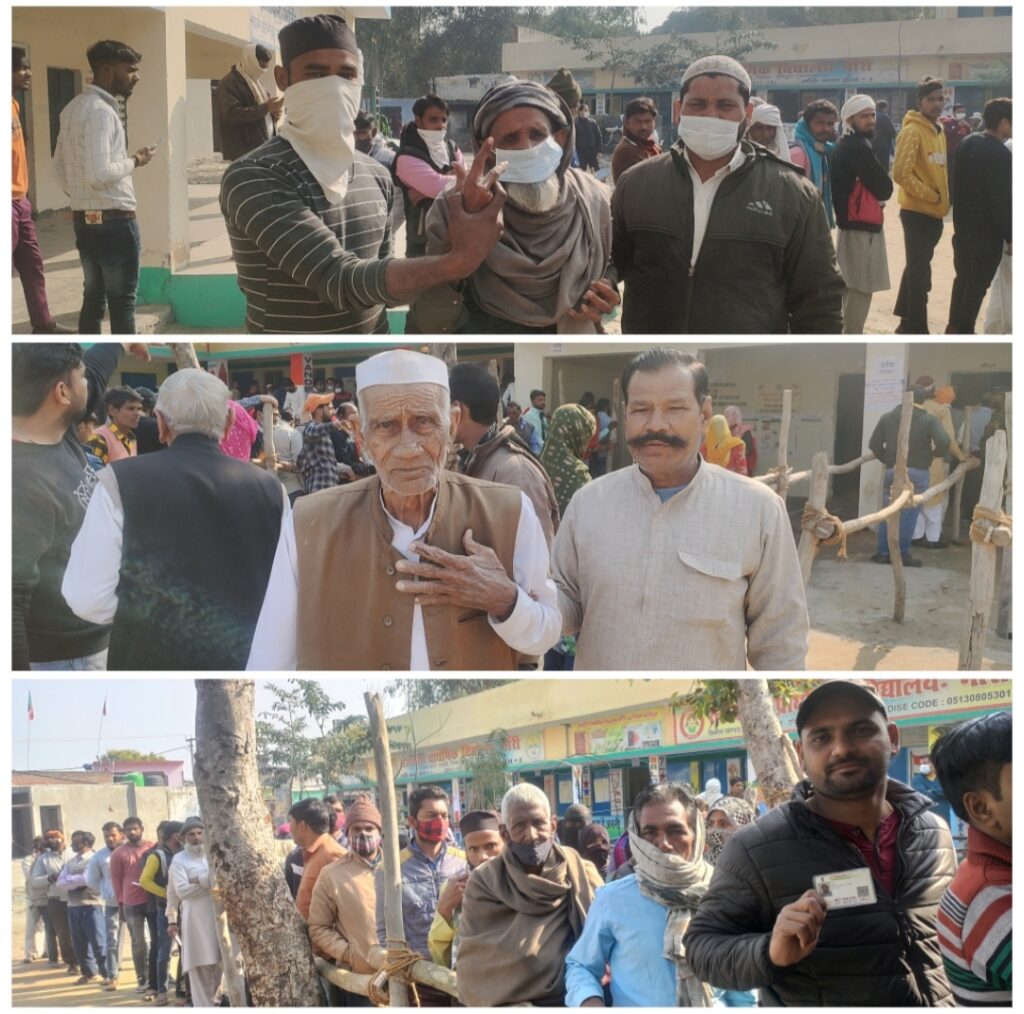 रुड़की।पिरान कलियर विधानसभा में शांतिपूर्ण मतदान चल रहा है वही क्षेत्र के लोगों ने मतदान में बढ़-चढ़कर हिस्सा लिया है और अपने-अपने प्रत्याशियों को जिताने के लिए अपने मत का प्रयोग किया। आपको बता दें की पिरान कलियर विधानसभा क्षेत्र के ग्राम भारापुर भौंरी में बुजुर्गों से लेकर युवाओं ने अपने मत का प्रयोग किया। 2022 के विधानसभा चुनाव में जहां कॉविड-19 की महामारी को लेकर चुनाव स्थल पर कड़े इंतजाम देखने को मिले जिसमें वोटरों का टेम्प्रेचर चेक करना और हाथो को सैनिटाइजर कराना वह वोटरों को गल्फस दिए गए। जिससे कोरोना जैसी महामारी बीमारी ना फैल सके वोटरों ने भी कोविड गाइड लाइन का पालन करते हुए अपने मत का प्रयोग किया। वही ग्राम भौंरी से 95 वर्षय बुजुर्ग प्रेमचंद ने भी अपना वोट डाला, ग्राम भौंरी से ही 80 वर्षीय लियाकत ने भी अपना वोट डाला, वही ग्राम भौंरी से ही जुनैद मलिक ने अपने कैरियर का पेहला वोट डाला जुनैद मलिक ने बताया की मेरा वोट पहली बार बना है और मैंने अपने मत का प्रयोग अपने प्रदेश और युवाओं को देखते हुए अपने प्रत्याशी को वोट दिया है,वही युवाओं में शोयब मलिक, सलमान, नासिर,शाहिद, तंजीम,कालू उर्फ दुल्ला,गुलजार, शहरान, जर्रार,हसीब,दानिस, आदि युवाओं ने अपना वोट इवीएम का बटन दबाकर किया।