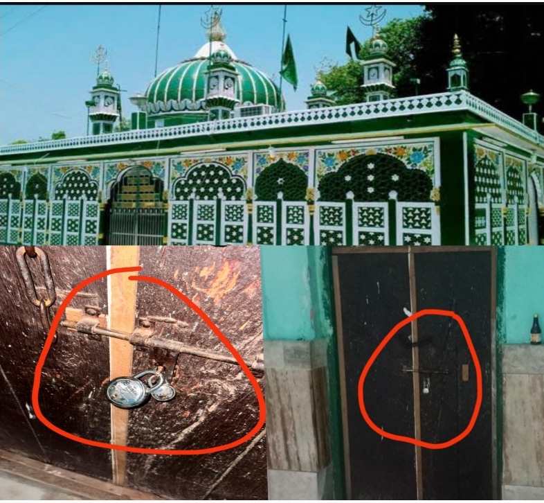 दरगाह परिसर में बने कमरे पर कब्जा करने का प्रयास,मामला मीडिया में आने के बाद दरगाह प्रशासन ने आनन फानन में जड़ा ताला।