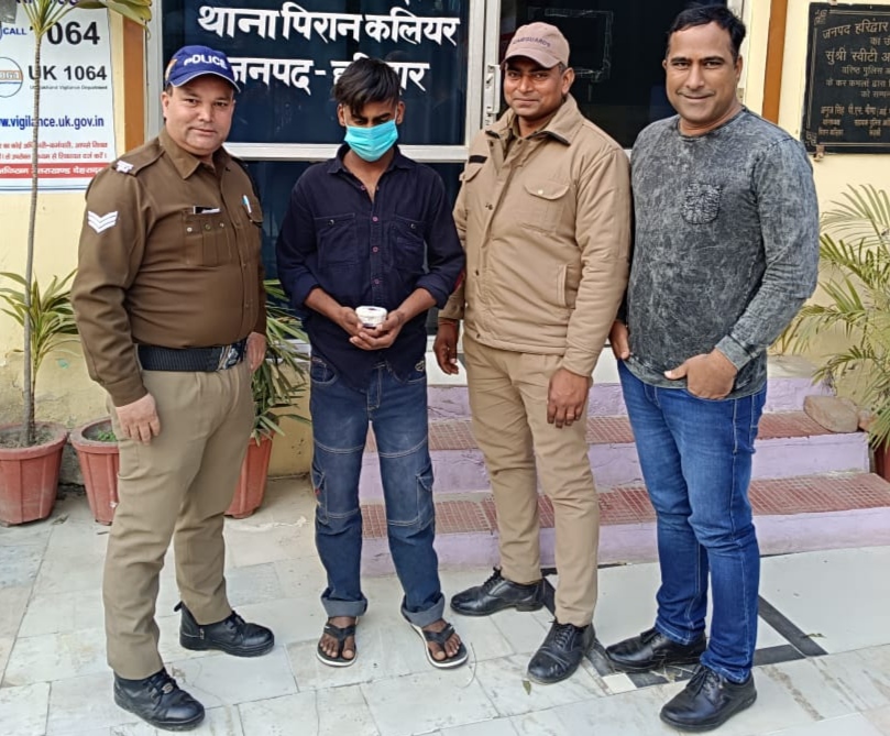 कलियर।शुक्रवार को कलियर थाना पुलिस ने चेकिंग के दौरान एक नशा तस्कर को धरदबोचा।वही कलियर क्षेत्र में बाहर से लाकर स्मेक चरस गांजे की सप्लाई कर रहे है जिससे क्षेत्र की युवा पीढ़ी नशे की गिरफ्त में आती जा रही है।और नशे की लत को पूरा करने के लिए युवा चोरी चकारी जेसे अपराध करने से भी नही डरते।वही आपको बता दें कि मुख्यमंत्री उत्तराखंड द्वारा ड्रग्स फ्री देवभूमि 2025 के तहत जनपद को नशा मुक्त अभियान में अवैध मादक पदार्थों शराब,स्मैक,चरस,गांजा आदि तस्करी रोकथाम करने के विरुद्ध हरिद्वार पुलिस द्वारा चलाये जा रहे अभियान को सफल बनाने के क्रम में थाना पिरान कलियर पुलिस द्वारा थाना क्षेत्रांतर्गत दौराने चैकिंग दिनाक 09.02.24 को 01 अभियुक्त सुहेब पुत्र सुल्तान निवासी ग्राम बेडपूर थाना पिरान कलियर जनपद हरिद्वार को बेडपुर चौक से करीब 100 मीटर आगे धनोरी की तरफ नई प्लाटिंग वाले रास्ते पर से 06.95 ग्राम अवैध स्मैक/के साथ गिरफ्तार किया गया। जिसके विरुद्ध थाना हाजा पर मुकदमा अपराध संख्या 39/2024 धारा 8/21/60 NDPS एक्ट पंजीकृत किया गया।अभियुक्त को माननीय न्यायलय के समक्ष पेश किया जायेगा।वही कलियर पुलिस ने जानकारी देते हुए बताया कि अभियुक्त के अपराधीक इतिहास की जानकारी की जा रही है।पुलिस टीम में उ.नि. उमेश कुमार,हेड का.बबलू कुमार,हेड का. संजय रावत,हेड का.भीमदत्त शर्मा,हेड का. सोनू चौधरी,का. जितेंद सिंह आदि शामिल रहे।