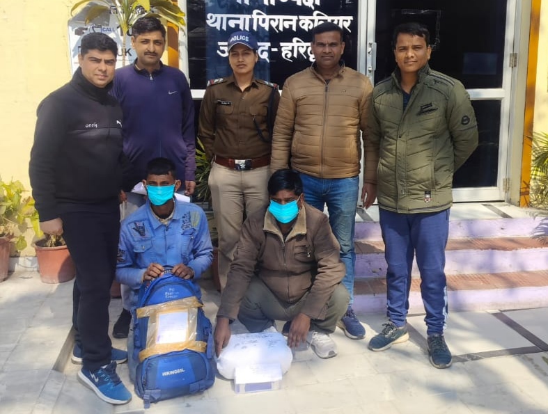 आपको बता दें कि मुख्यमंत्री उत्तराखंड द्वारा ड्रग्स फ्री देवभूमि 2025 के तहत जनपद को नशा मुक्त अभियान में अवैध मादक पदार्थों शराब,स्मैक,चरस,गांजा आदि तस्करी रोकथाम करने के विरुद्ध हरिद्वार पुलिस द्वारा चलाये जा रहे अभियान को सफल बनाने के क्रम में दिनांक 14 फरवरी 2024 को दौराने चेकिंग पुलिस द्वारा एक अभियुक्त को लगभग 2 किलो गांजा के साथ गिरफ्तार किया जिसने पूछताछ पर बताया कि यह माल मुक़र्बपुर में रहने वाले जाकिर द्वारा मंगाया गया गया था। जिसे मैं छोटी-छोटी मात्रा में बेचने वाला था जिसके विरुद्ध थाना हाजा पर मु0 अ0 संख्या 45 /24 धारा 8/20 एनडीपीएस एक्ट पंजीकृत कर मु0अ0स0 45/23 धारा 29 NDPS ACT में वांछित अभियुक्त जाकिर उपरोक्त की तलाश की गई जिसके फलस्वरूप वांछित जाकिर उपरोक्त को उसके घर के पास से रईस कॉलोनी से गिरफ्तार किया गया क्षेत्रधिकारी रूड़की द्वारा मौके पर आकर अपने समक्ष तलाशी ली गयी तो जिसकी निशादेहीं पर लगभग 5 किलो गांजा बरामद कर थाने पर मुकदमा अपराध संख्या 46/24 धारा 8/20 एनडीपीएस एक्ट पंजीकृत किया गया अभियुक्त जाकिर द्वारा बताया गया कि यह सारा माल मेरा है और मैं इसे बाहर से मंगा कर यहां पर छोटी-छोटी मात्रा में सप्लाई करता हूं।अभियुक्त जाकिर के विरुद्ध उत्तर प्रदेश के जनपद मुजफ्फरनगर मेरठ गाजियाबाद के आपराधिक इतिहास की जानकारी की जा रही है।वही अभियुक्त के द्वारा मादक पदार्थों की बिक्री कर बिक्री से कमाई गई संपत्ति की वाणिज्यिक इन्वेस्टिगेशन की जाएगी जो भी अवैध मादक पदार्थ की बिक्री से खरीदी गई संपत्ति होगी उसे पर नियम अनुसार कार्रवाई की जाएगी एवं अभियुक्त की आपराधिक इतिहास को देखते हुए उसकी हिस्ट्री शीट भी खोली जायेगी,बरामदगी लगभग 7 किलो गांजा,नाम पता अभियुक्त गण जाकिर पुत्र ताहिर निवासी रईस कॉलोनी मुक़र्बपुर,इरशाद पुत्र इसाक निवासी उपरोक्त। पुलिस टीम थानाध्यक्ष दिलबर सिंह नेगी,वरिष्ठ उप निरी0आमिर खान,उप0निरी0हेमदत भारद्वाज,हेड कांस्टेबल रविंद्र बालियान,हेड कांस्टेबल अलियास अली,हेड कांस्टेबल जमशेद अली,हेड कांस्टेबल सोनू चौधरी,हे0का0 जयप्रकाश शामिल रहे।