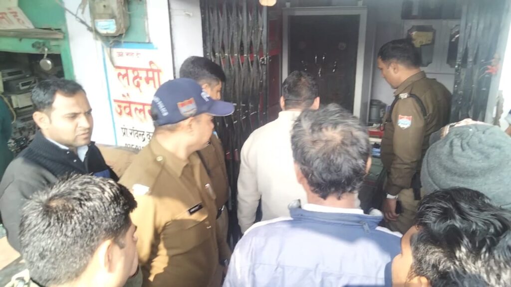 शनिवार की रात सुनार की दुकान का चोरो ने फाड़ा शटर,चौकी से लगभग दो सौ मीटर दूर चोरो ने वारदात को दिया अंजाम।