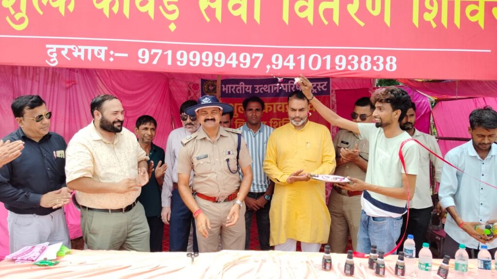 धनौरी तिरछे पुल पर भारतीय उत्थान परिषद ट्रस्ट की ओर से कावड़ सेवा शिविर का प्रारंभ किया गया,एसपी देहात एसके सिंह ने कहा कि शिव भक्तों की सेवा ही भोले की सेवा है।