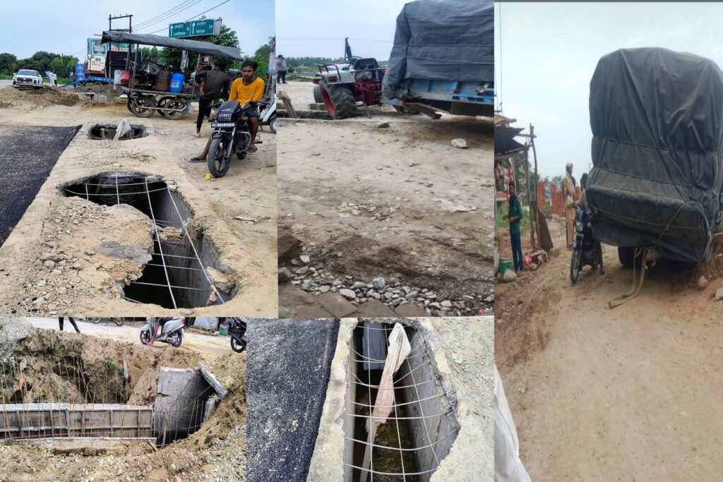 लक्सर रोड़ हाईवे किनारे बन रहे नाले में भ्रष्टाचार की खुली पोल,दूसरे दिन ट्रेक्टर का पहिया फिर नाले में धसा,किसी बड़े हादसे का है इंतजार।