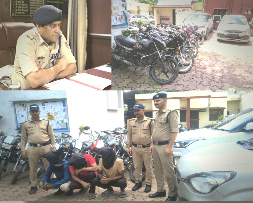 बुधवार को अलग-अलग तीन मामलों में अन्तर्ऱाज्यीय वाहन चोर गिरोह का पुलिस ने किया खुलासा,नाबालिक सहित चार आरोपियो को पुलिस ने किया गिरफ्तार।
