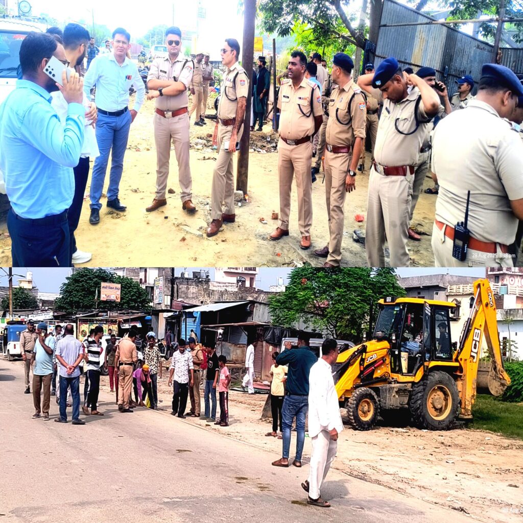 थाने के लिए एक्वायर की गई भूमी से प्रशासन की टीम ने हटाई दुकानें,ओर उक्त भूमी की पैमाईश नापतोल कर लगाए निशान।