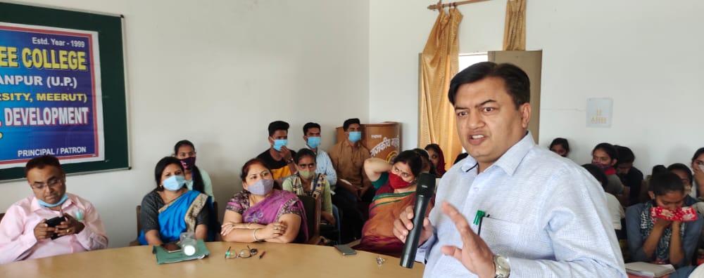 मुख्य वक्ता ने बताया कि केरियर हमारे जीवन से जुड़ा होता है। जिसके लिए सुनने की जरूरत कम होती है समझने की ज्यादा। केरियर क्या होता है? जीवन चलाने के लिए पैसा चाहिए वह पैसा प्राप्त करने के लिए लंबे समय तक काम करना पड़ता है अर्थात काम पैसा कमाने का जरिया है युवावस्था में हम जो भी कार्य चुनते हैं या करते हैं उससे हमारा पूरा जीवन यापन होता है चाहे उसमें वृद्धावस्था ही क्यों न हो। कैरियर के लिए नौकरी बिजनेस कर दिया कोई विशेष गुण के आधार पर भी कैरियर बनाया जा सकता है जैसे खिलाड़ी बनना चाहे क्रिकेट का या फुटबॉल आदि का यदि कैरियर के बिना जीवन चलाना है तो जीवन तो पशुओं का भी चलता है। लेकिन उसे अच्छा चलाने के लिए वह कौशल विकसित करने के लिए तथा सम्मानजनक जीवन जीने के लिए पैसा धन कमाना आवश्यक है। जिससे प्रतिष्ठा बढ़ती है। जहां तक संभव हो अपनी पसंद का होना चाहिए इस अपनी पसंद के केयर में विरोध भी सहना पड़ता है जो कि अभिभावकों की तरफ से होता है हमारे सामने समाज के अनेकों उदाहरण दिखाई देते हैं जो भी सफल हुआ उसे बहुत परेशानियों का सामना करना पड़ा। कैरियर के लिए सबसे पहले अपने ऊपर विश्वास होना चाहिए। साथ ही दृढ़ इच्छाशक्ति भी होनी चाहिए जिस कैरियर को चुनना हो उसके लिए हमें जानकारी व हमारी जिज्ञासा का होना एवं उससे प्रेम होना आवश्यक है। कैरियर को प्रभावित करने वाले कुछ तत्वों में जैसे अभिभावक वातावरण आर्थिक स्थिति का प्रभाव सबसे ज्यादा पड़ता है। कैरियर का चुनाव करते समय अपने पास ऑप्शंस रखने चाहिए और कैरियर काउंसलिंग में हमें अपने उन ऑप्शंस पर विशेषज्ञों से चर्चा भी करनी चाहिए। कैरियर के लिए आदर्श वाक्य यह होनी चाहिए कि मैं यह बनूंगा लेकिन मैं यह बनना चाहता हूं। कैरियर में अपना विकास करने के लिए व्यक्तित्व विकास एवं समाज की मानसिकता चिंताओं से स्वतंत्र होनी चाहिए। गोष्टी के अवसर पर प्रोफेसर धर्मेंद्र कुमार द्विवेदी, डॉ नितिन चौधरी, डॉ त्रिसुख सिंह, डॉ शरद कुमार भटनागर, प्रोफेसर पूर्णिमा सिंह, प्रोफेसर अर्चना सिंह, डॉ अनामिका सक्सेना, आदि प्राध्यापक उपस्थित रहे।