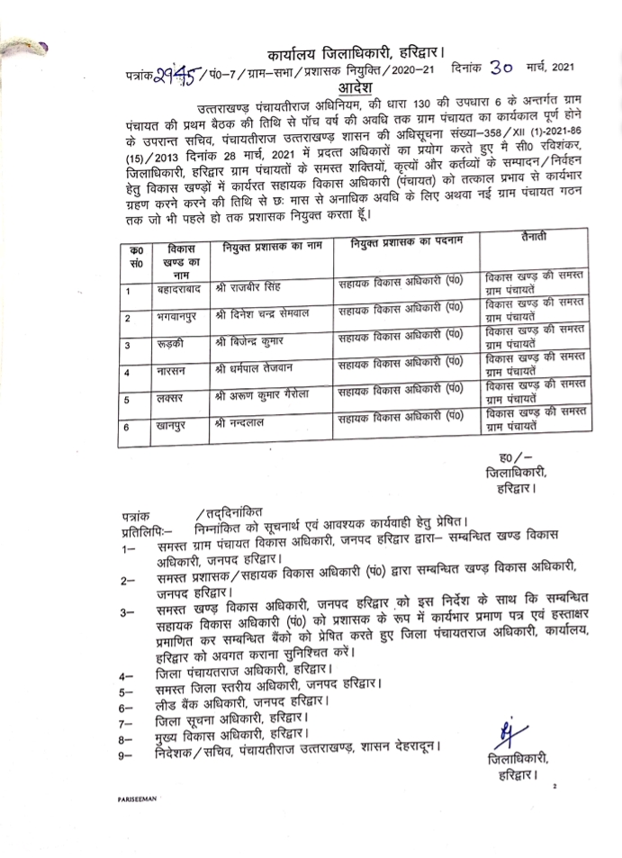 712 total views जिला हरिद्वार में पंचायती राज ख़त्म अफसरों का राज चालू ग्रामीण क्षेत्र में वोटरों को लुभाने के लिए नेताओं की हल चल हुई तेज। बुरहान राजपूत: 24 पब्लिक न्यूज़ रुड़की जिला हरिद्वार के ग्राम प्रधानो का 28 मार्च को कार्यकाल समाप्त हो गया है। आज से ग्राम प्रधानो […]